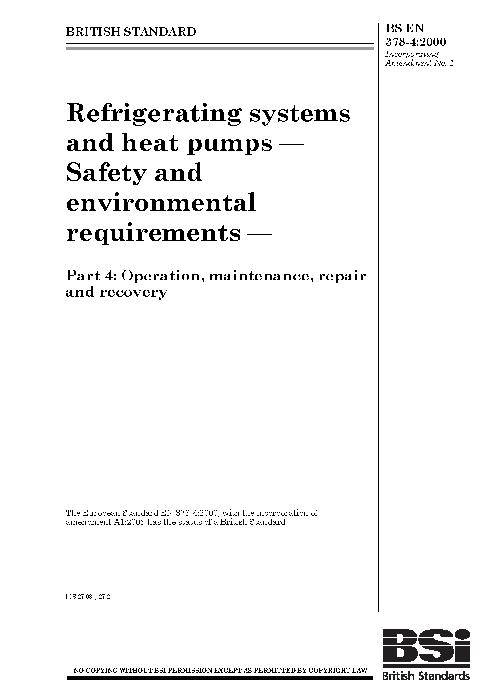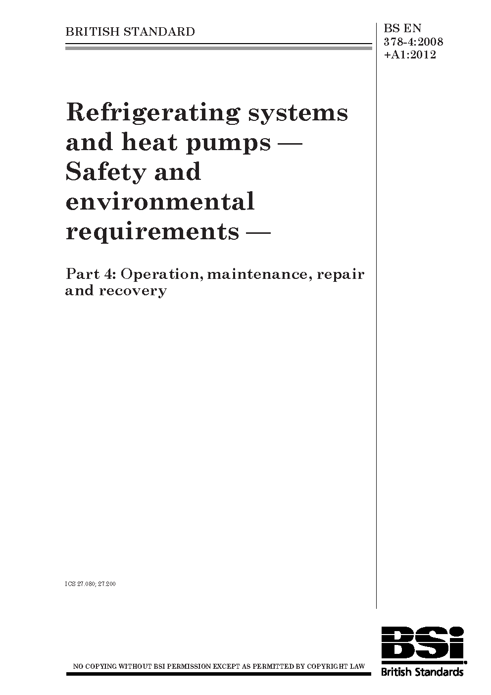 Heat transfer;Refrigeration;Environmental engineering;Heat pumps;Repair;Health and safety requirements;Safety;Operating conditions;Recycling;Refrigerating systems;Maintenance;Hazards;Refrigerators