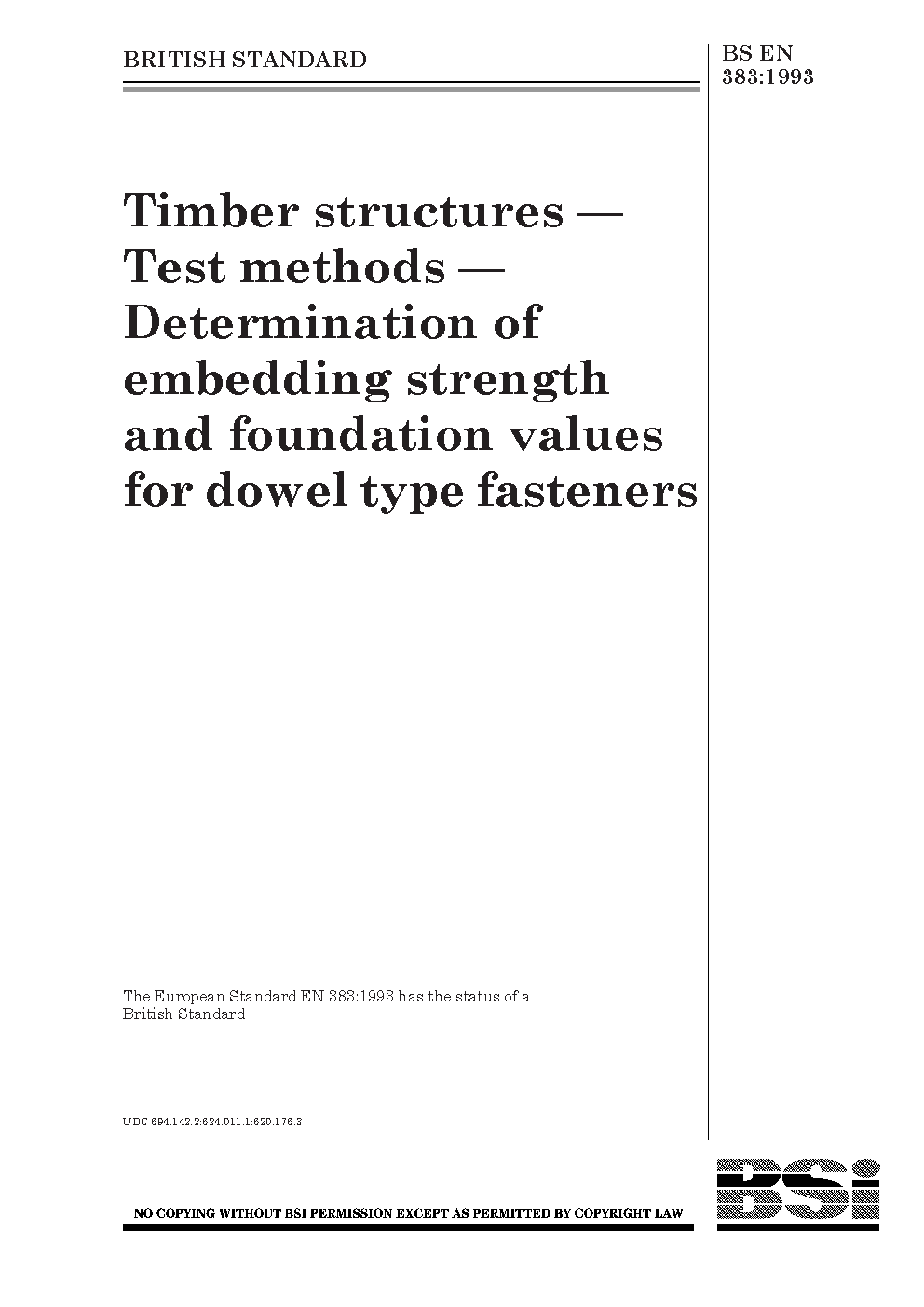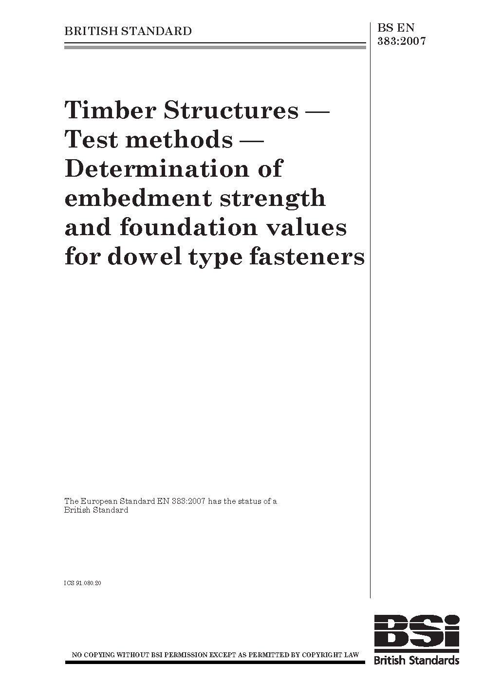 Sheet materials;Accuracy;Nailed joints;Laminates;Specimen preparation;Wood;Test specimens;Formulae (mathematics);Deformation;Strength of materials;Construction materials;Bolted joints;Timber connectors;Dowelled joints;Loading;Testing conditions;Mechanical testing;Joints;Structural timber;Stiffness