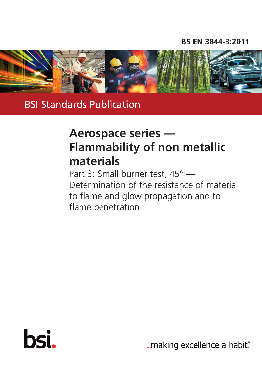 Aerospace series. Flammability of non-metallic materials Small burner test, 45°. Determination the resistance material to flame and glow propagation penetration