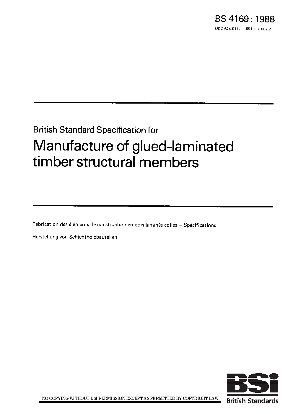Glued laminated timber. Performance requirements and minimum production requirements