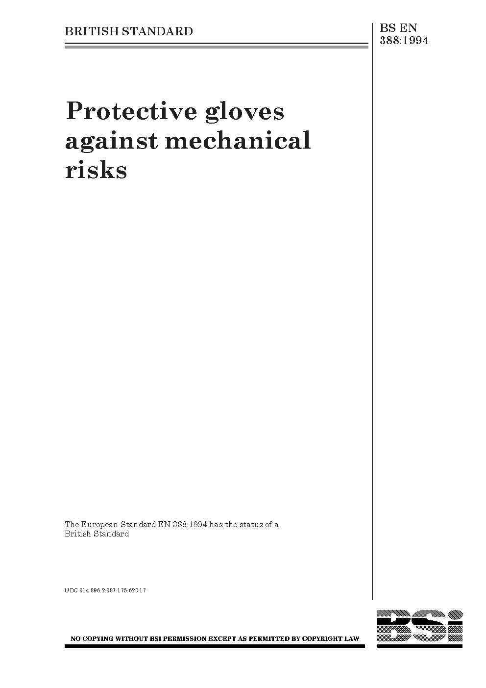 Penetration tests;Mechanical properties of materials;Gloves;Marking;Impact testing;Wear tests;Tear tests;Protective gloves;Occupational safety;Mechanical testing;Protective clothing;Grades (quality);Perforating tests