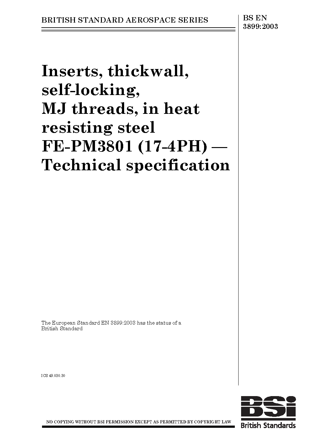 Aerospace series. Inserts, thickwall, self-locking, MJ threads, in heat resisting steel FE-PM3801 (17-4PH). Technical specification