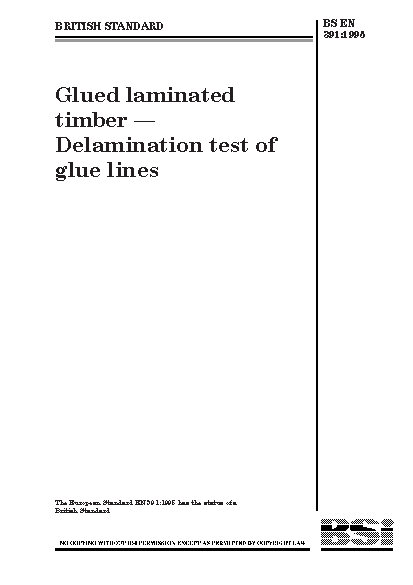 Glued laminated timber. Delamination test of glue lines