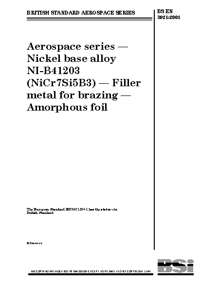 Aerospace series. Nickel base alloy NI-B41203 (NiCr7Si5B3). Filler metal for brazing. Amorphous foil