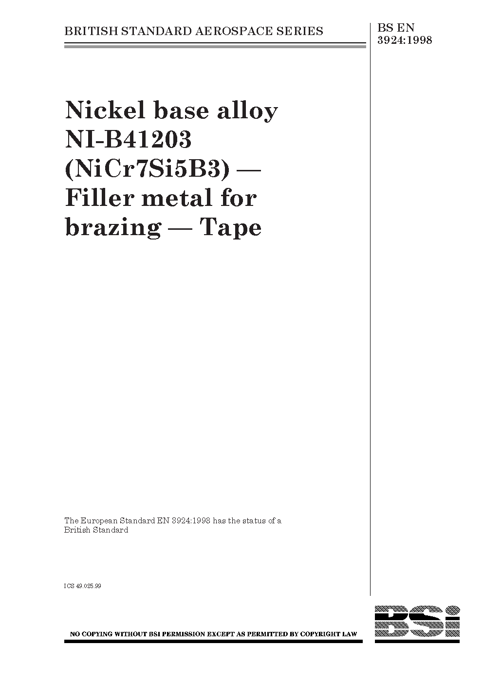Non-ferrous alloys;Nickel alloys;Aircraft components;Brazing alloys;Air transport engineering;Nickel;Brazing;Tape;Chemical composition;Melting point;Filler metal;Joining materials