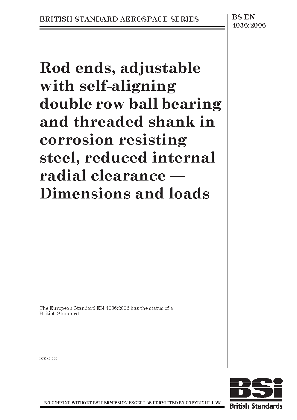 Corrosion-resistant steels;Aircraft controls;Static loading;Double-row bearings;Dimensions;Tool shanks;Clearances;Dimensional tolerances;Aircraft components;Self-aligning bearings;Loading;Rolling bearings;Designations;Roughness (surface);Rod ends;Threaded components;Threads;Mass;Torque;Marking;Airframe bearings