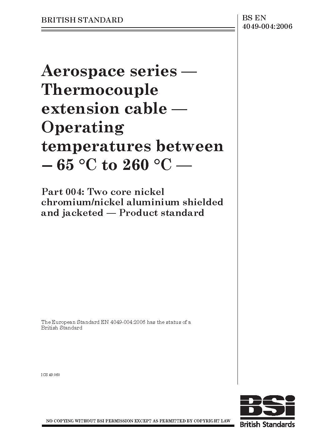 Aerospace series. Thermocouple extension cable. Operating temperatures between -650DC and 260°C Two core nickel chromium/nickel aluminium shielded jacketed. Product standard