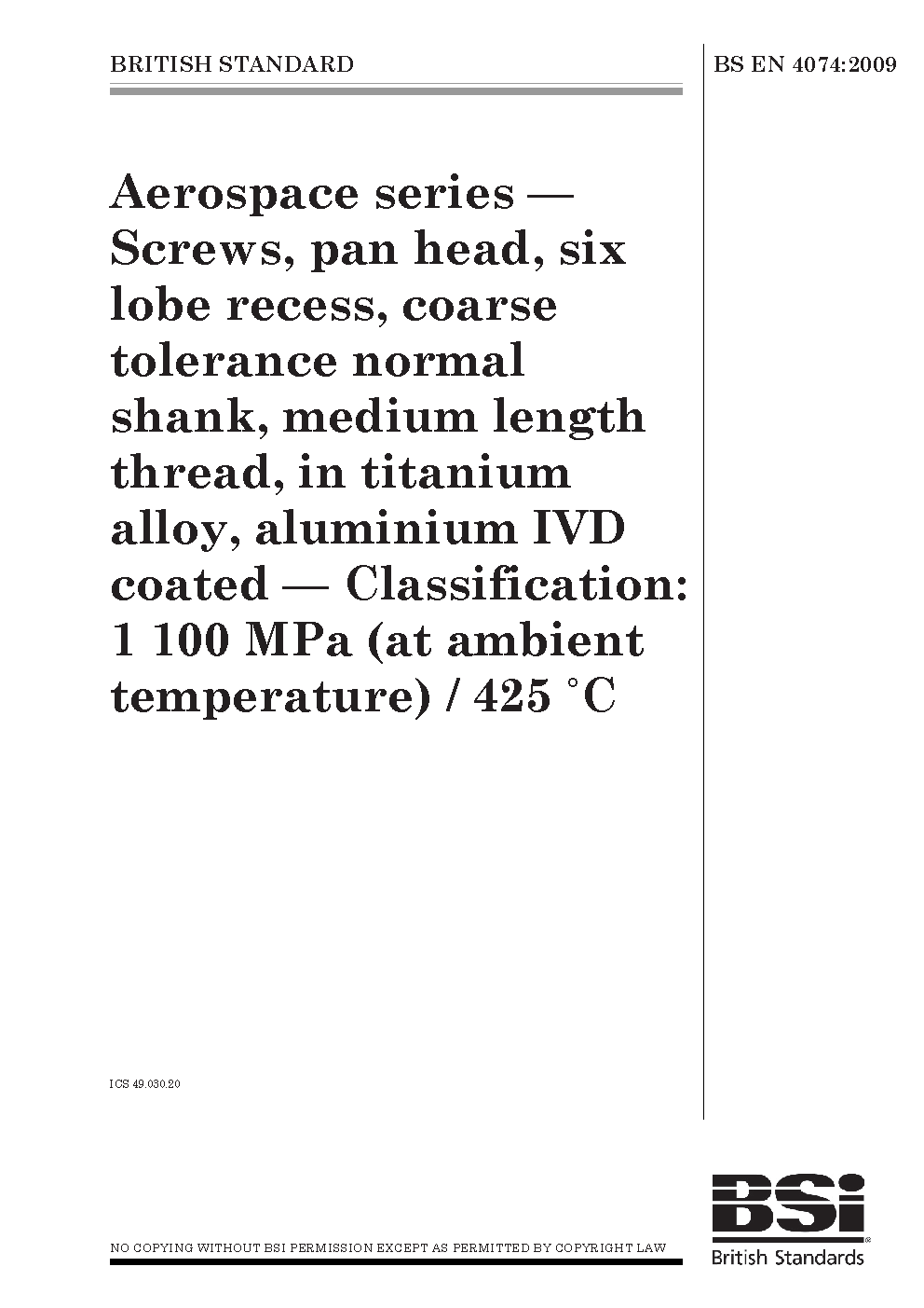 Aerospace series. Screws, pan head, six lobe recess, coarse tolerance normal shank, medium length thread, in titanium alloy, aluminium IVD coated. Classification: 1100 MPa (at ambient temperature)/425°C