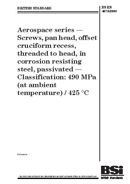Aerospace series. Screws, pan head, offset cruciform recess, threaded to head, in corrosion resisting steel, passivated. Classification: 490 MPa (at ambient temperature) / 425 °C