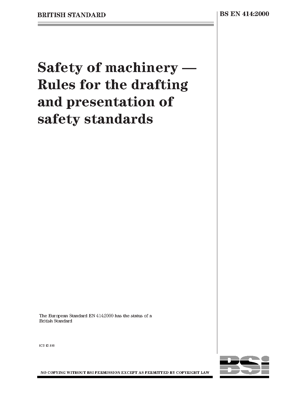 Safety of machinery. Rules for the drafting and presentation of safety standards