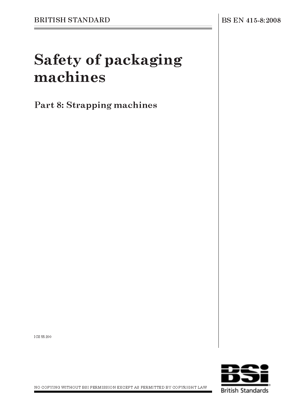 Equipment safety;Safety devices;Cleaning;Control devices;Verification;Noise control (acoustic);Instructions for use;Materials handling;Hazards;Maintenance;Packaging;Occupational safety;Packaging machines;Straps;Safety measures
