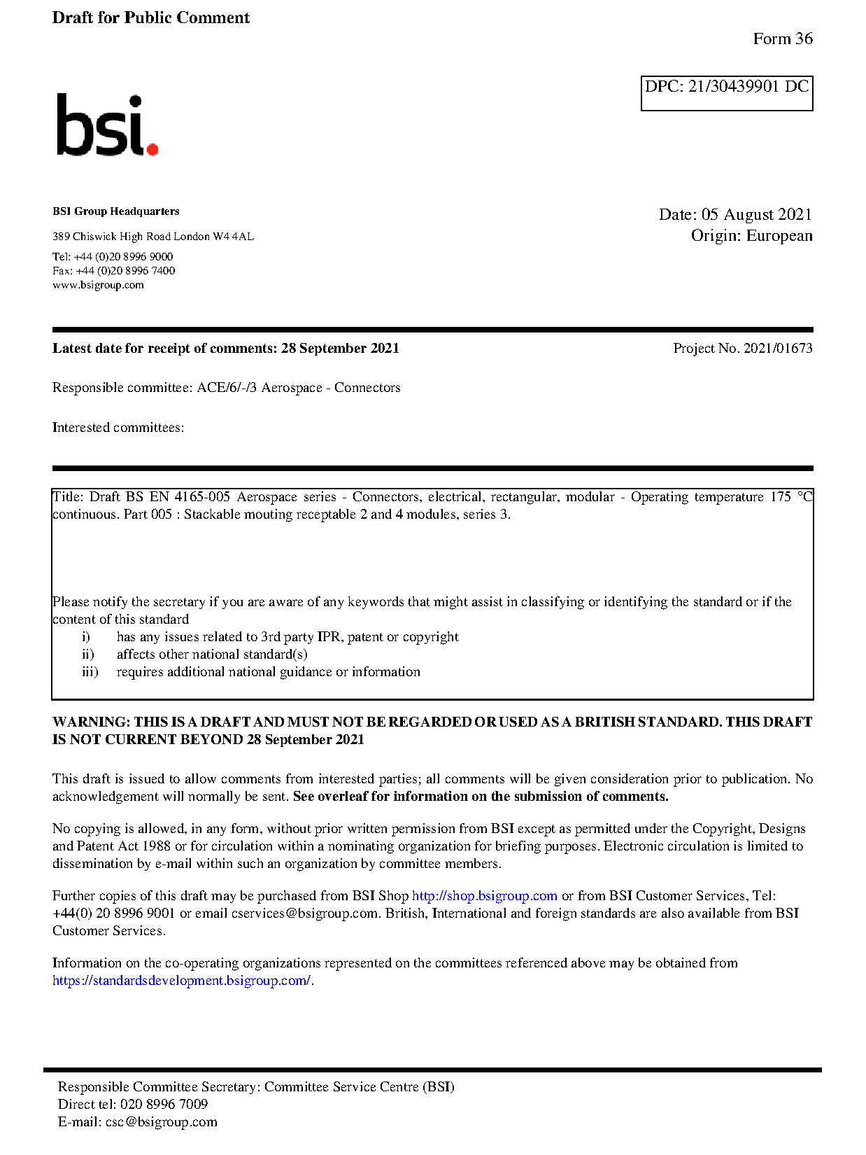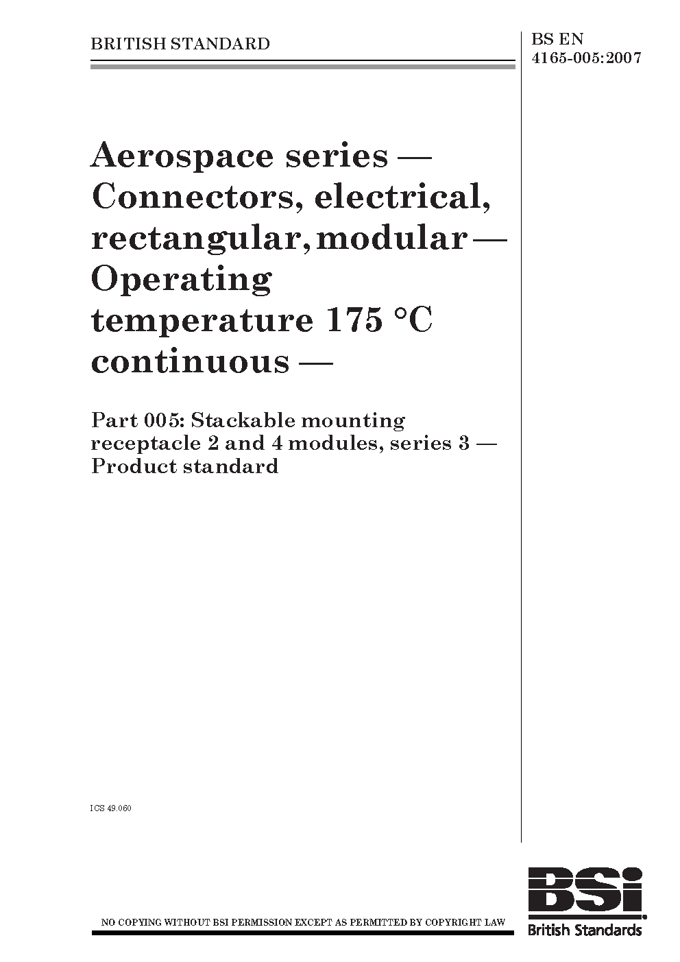 Aerospace series. Connectors, electrical, rectangular, modular. Operating temperature 175 °C continuous Stackable mounting receptacle 2 and 4 modules, series 3. Product standard