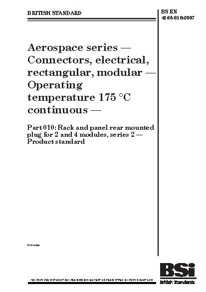 Aerospace series. Connectors, electrical, rectangular, modular. Operating temperature 175 °C continuous Rack and panel rear mounted plug for 2 4 modules, series Product standard