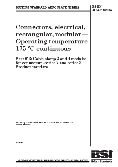 Aerospace series. Connectors, electrical, rectangular, modular. Operating temperature 175 °C continuous Cable clamp 2 and 4 modules for connectors, series 3. Product standard