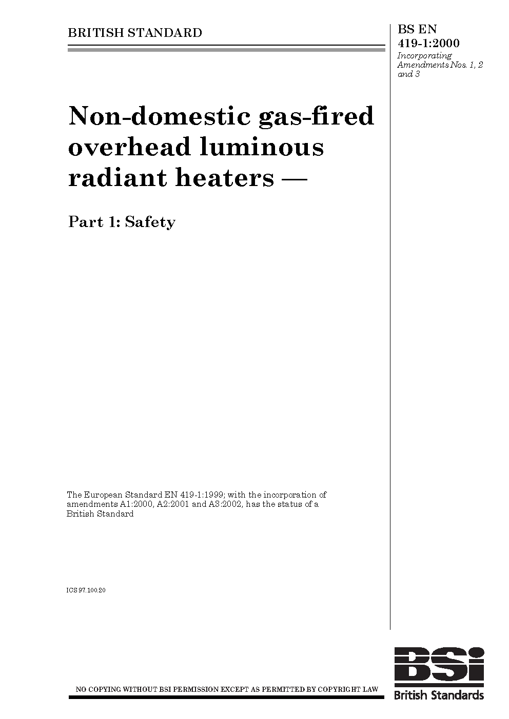 Non-domestic gas-fired overhead luminous radiant heaters Safety