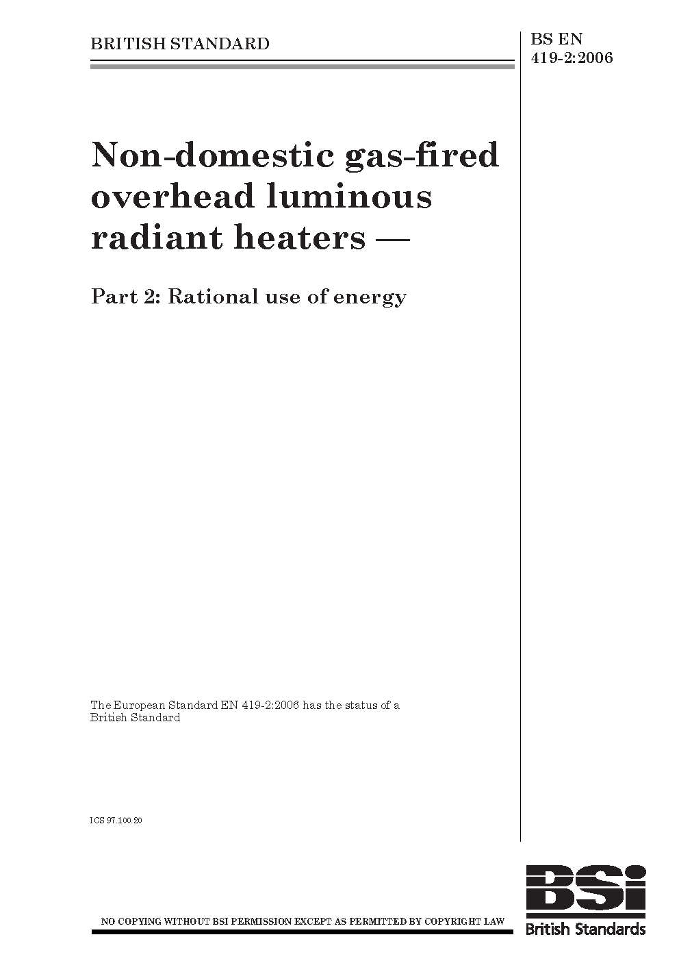 Gas-fired overhead luminous radiant heaters for non-domestic use. Safety and energy efficiency