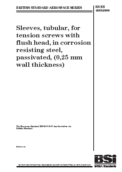 Fasteners;Steels;Corrosion-resistant steels;Screws (bolts);Passivation;Pipes;Diameter;Aircraft components;Sleeves (mechanical components)