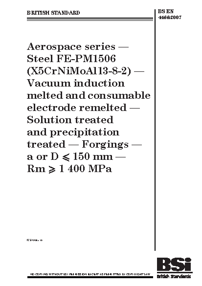 Dimensions;Solution heat treatment;Elongation;Hardness;Air transport engineering;Proof stress;Impact strength;Steels;Tensile strength;Chemical composition;Consumable electrodes;Forgings;Grain size;Vacuum melting;Remelting;Precipitation hardening;Heat treatment