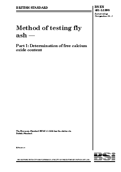 Method of testing fly ash Determination free calcium oxide content