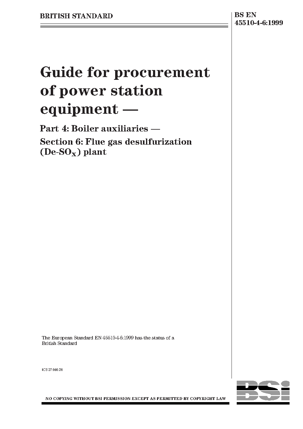 Guide for the procurement of power station equipment. Boiler auxiliaries Flue gas desulfurization (De-SOx) plant desulphurization (De-SOx)