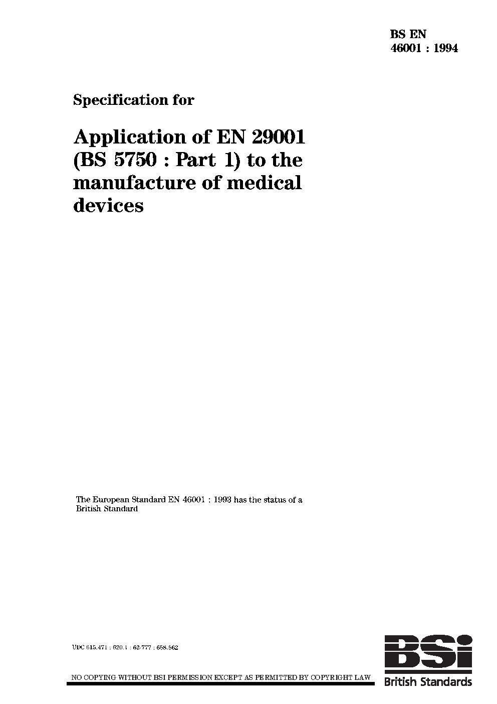 Application of EN 29001 (BS 5750:Part 1) to the manufacture of medical devices