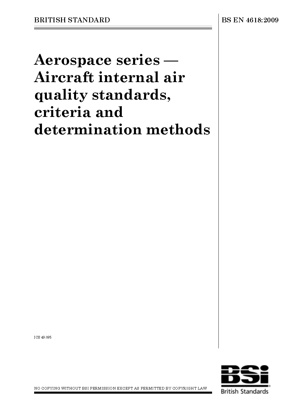Aerospace series. Aircraft internal air quality standards, criteria and determination methods