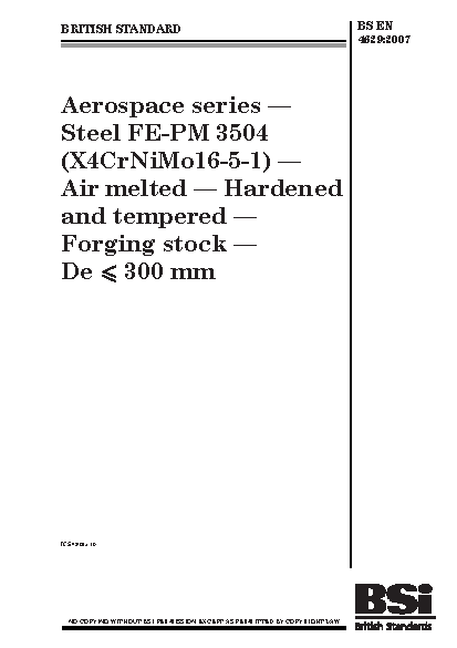Aerospace series. Steel FE-PM 3504 (X4CrNiMo16-5-1). Air melted. Hardened and tempered. Forging stock. De = 300 mm