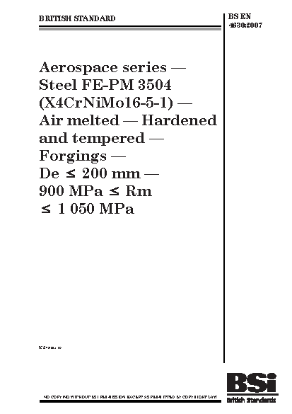 Aerospace series. Steel FE-PM 3504 (X4CrNiMo16-5-1). Air melted. Hardened and tempered. Forgings. De = 200 mm. 900 MPa = Rm = 1050 MPa