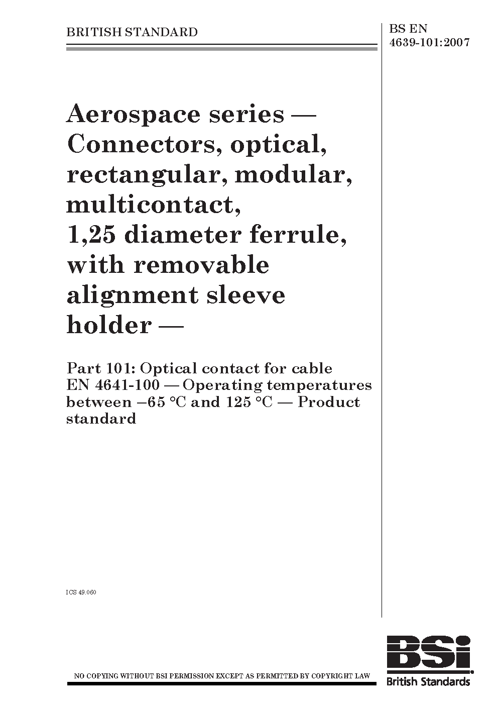 Rectangular shape;Sleeves (mechanical components);Fibre optic cables;Assembling;Electric connectors;Dimensions;Multicontact connectors;Ferrules;Removable;Aircraft components;Modules;Fibre optic connectors;Test methods;Designations;Fibre optics