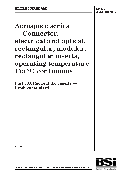 Aerospace series. Connector, electrical and optical, rectangular, modular, rectangular inserts, operating temperature 175 °C (or 125 °C) continuous Rectangular inserts. Product standard