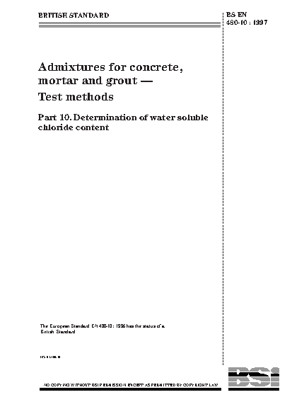 Admixtures for concrete, mortar and grout. Test methods Determination of water soluble chloride content