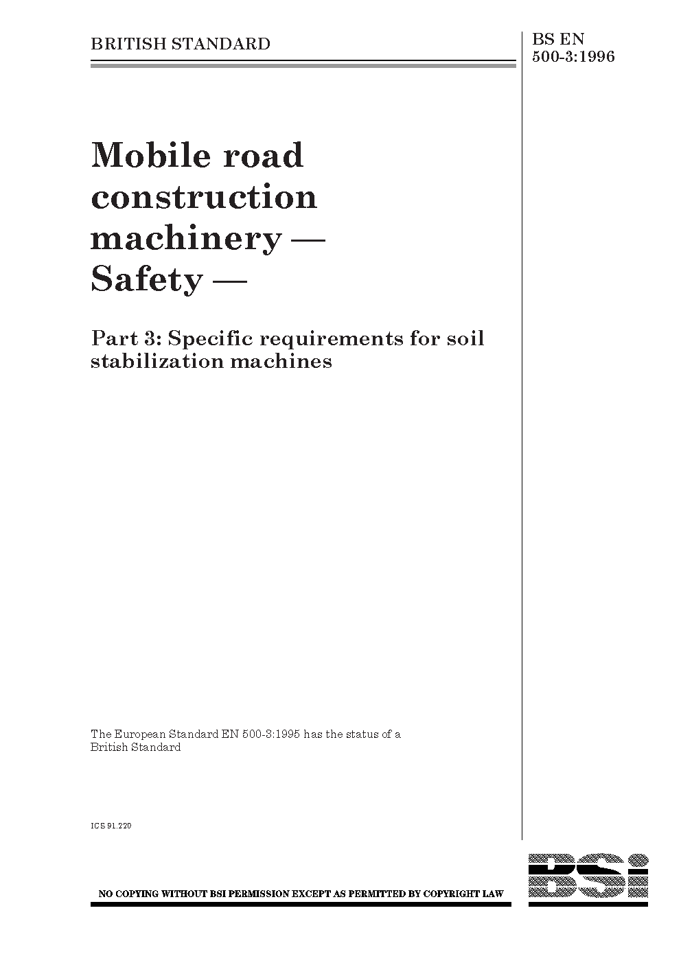 Mobile road construction machinery. Safety Specific requirements for soil-stabilizing machines and recycling
