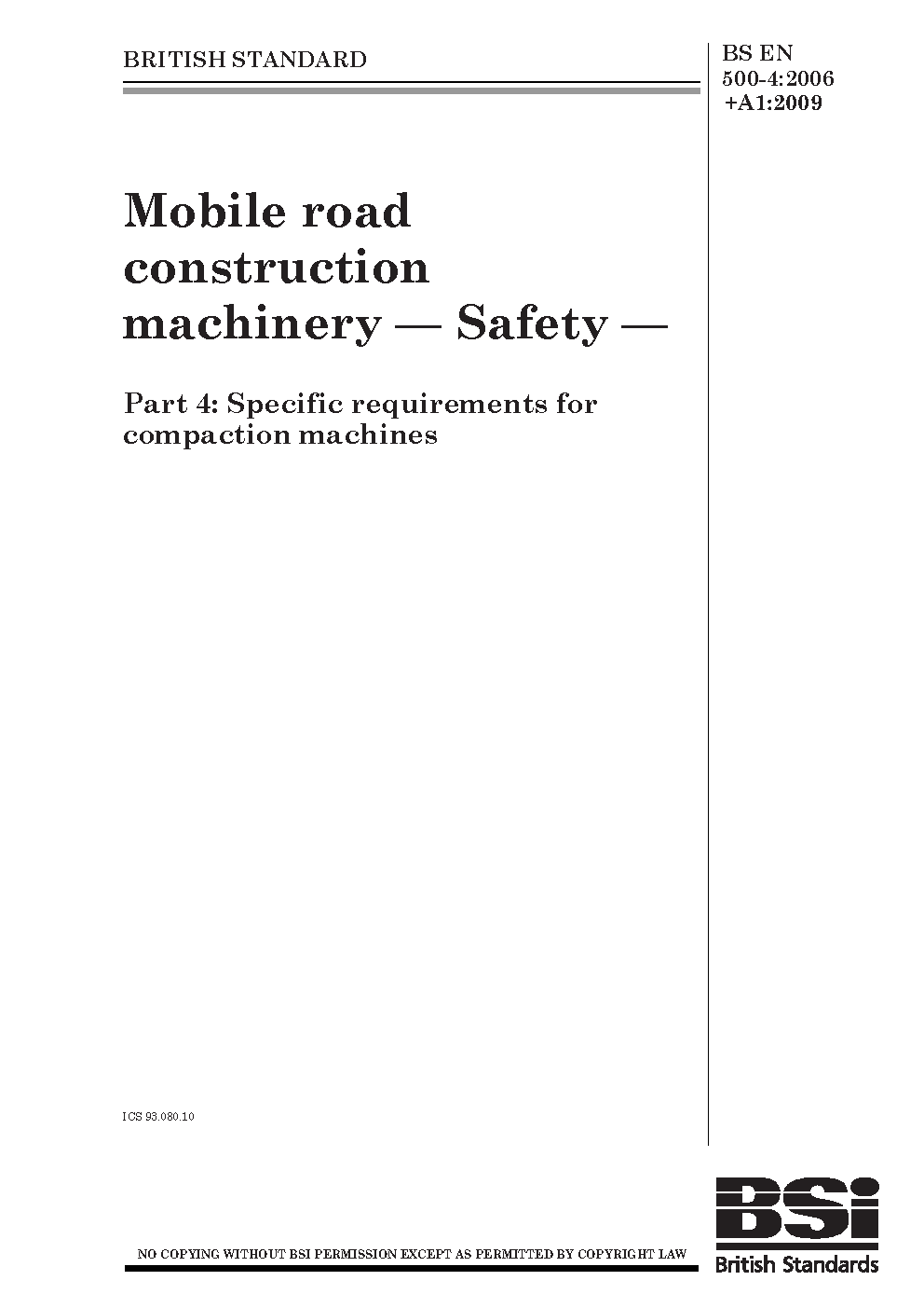 Mobile road construction machinery. Safety Specific requirements for compaction machines