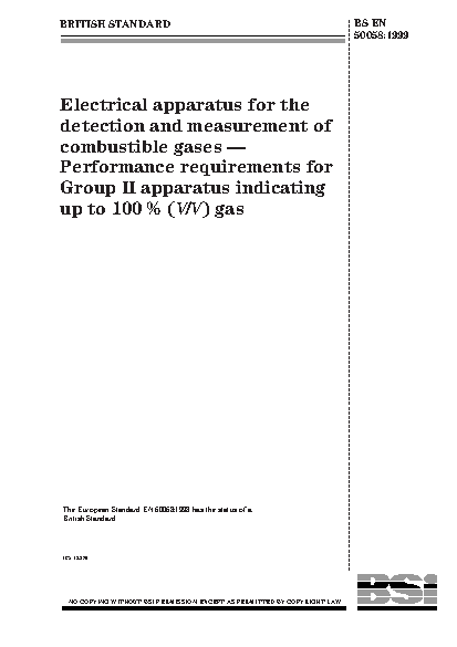 Specification for electrical apparatus for the detection and measurement of combustible gases. Performance requirements for Group II apparatus indicating up to 100 % (V/V) gas