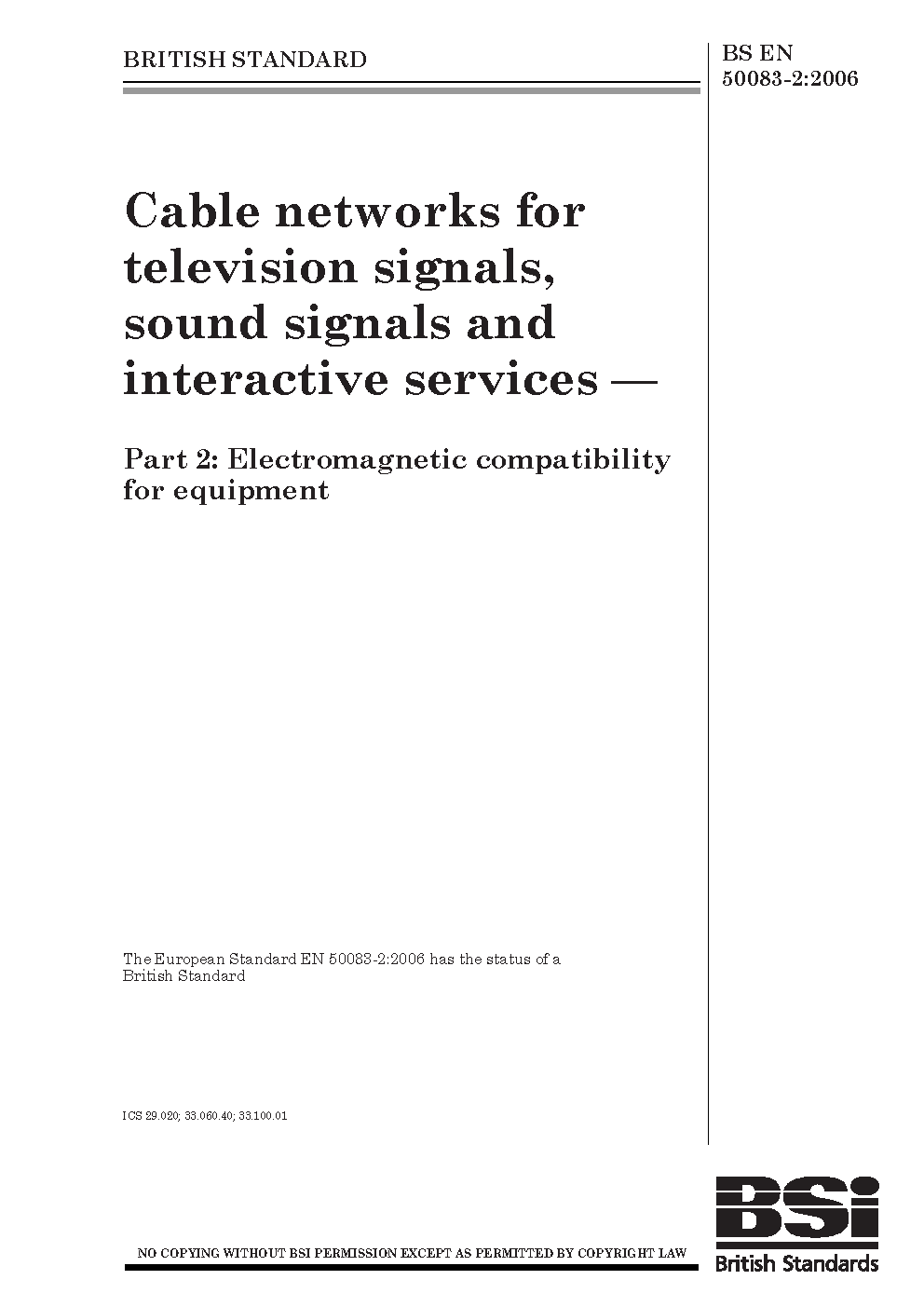 Cable networks for television signals, sound signals and interactive services Electromagnetic compatibility equipment