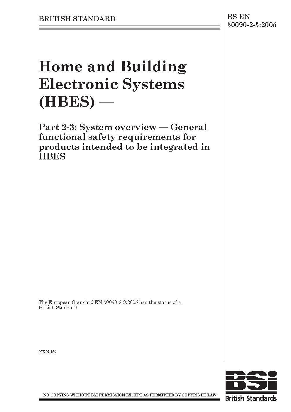 Home and building electronic systems (HBES) System overview. General functional safety requirements for products intended to be integrated in HBES