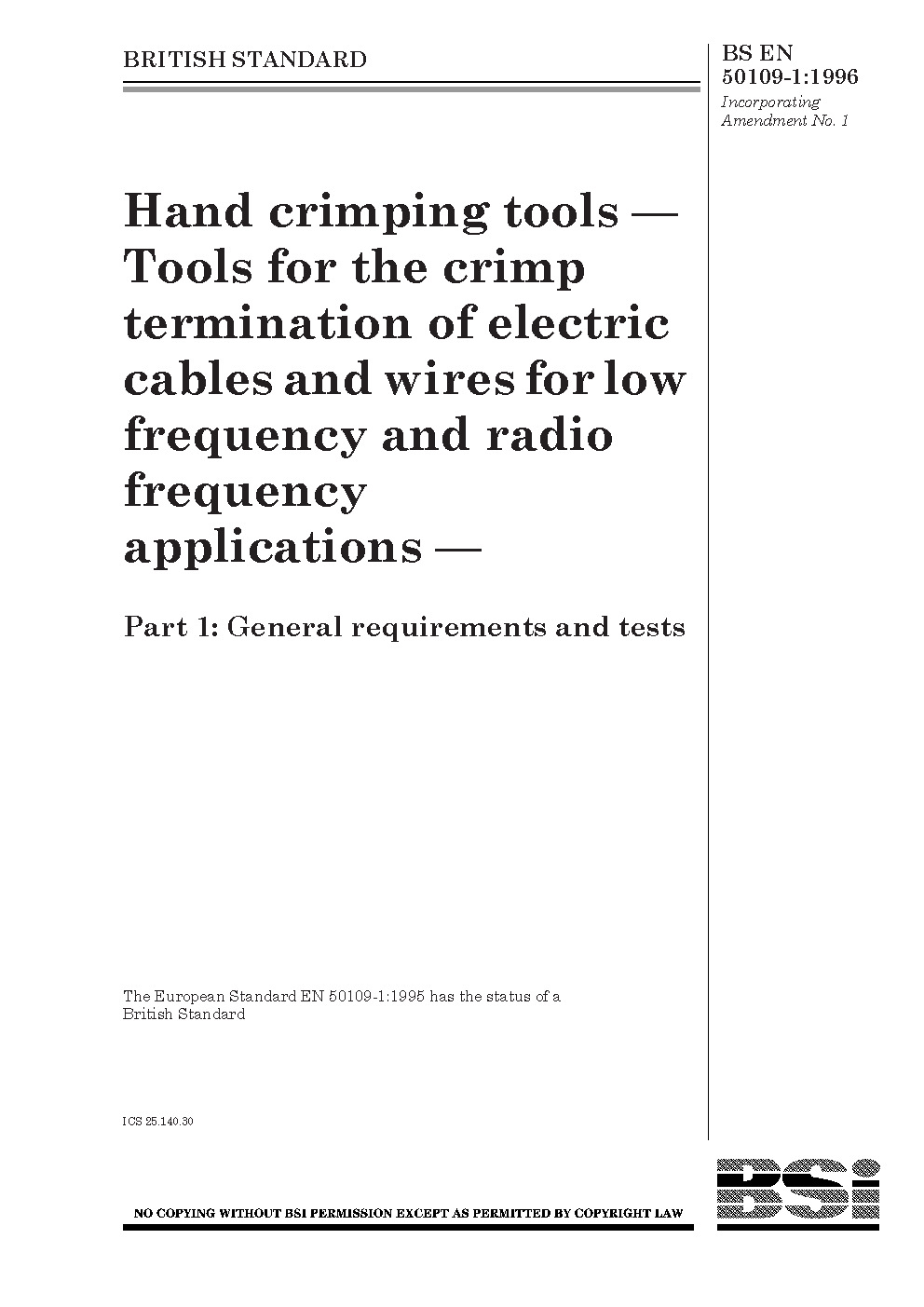 Hand crimping tools. Tools for the crimp termination of electric cables and wires low frequency radio applications General requirements tests