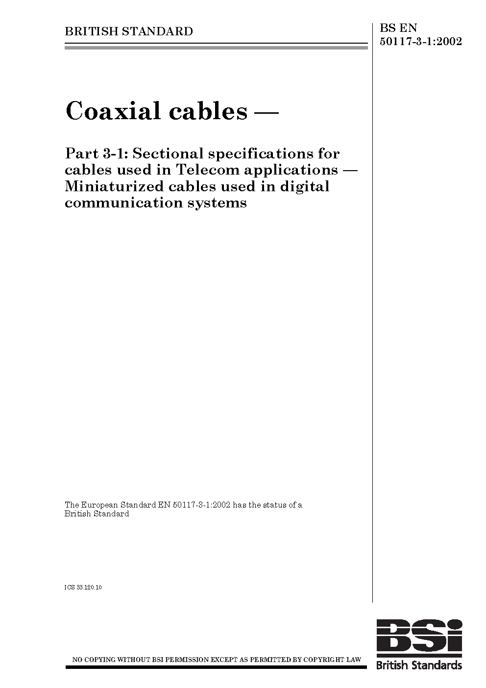 BS EN 50117-3-1:2002