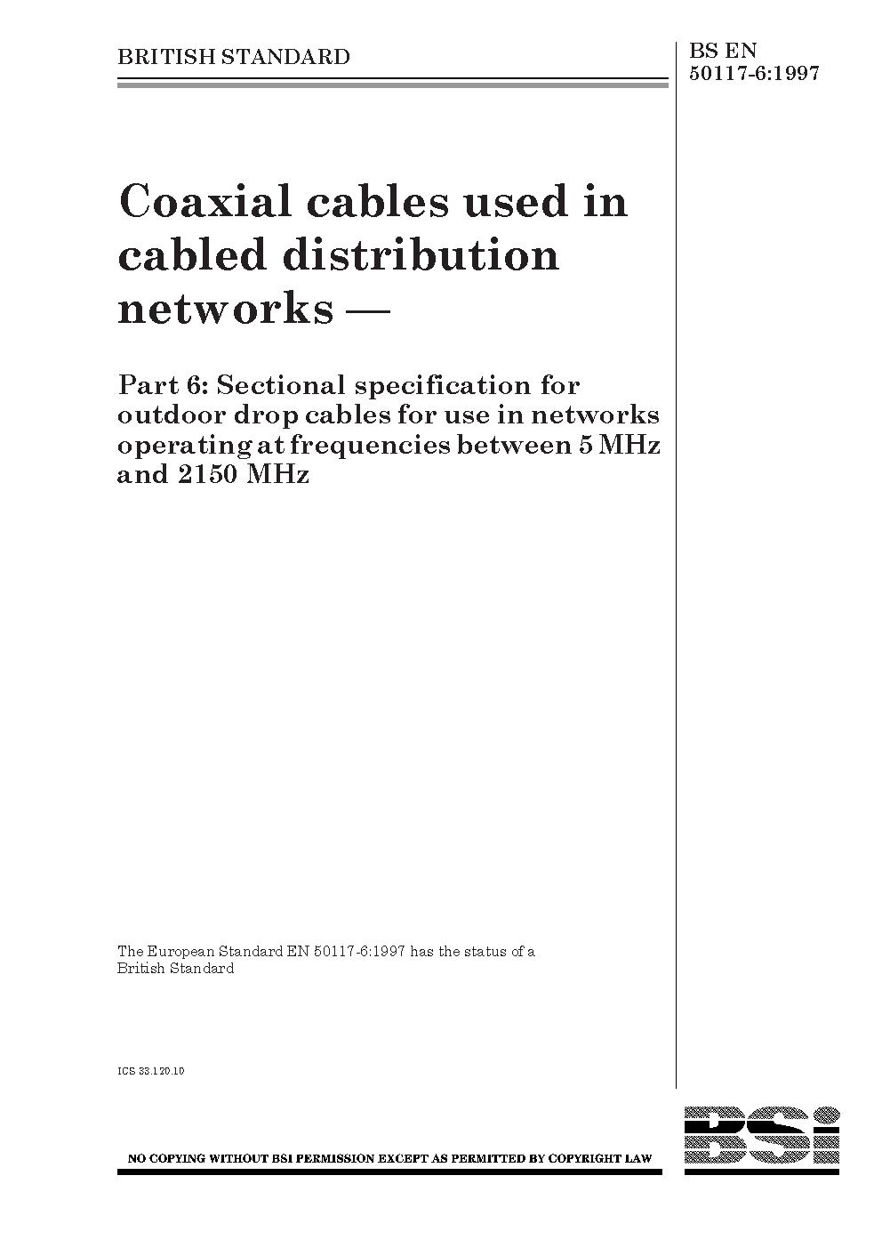 BS EN 50117-6:1997