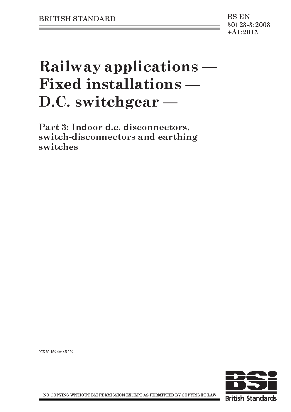 BS EN 50123-3:2003+A1:2013