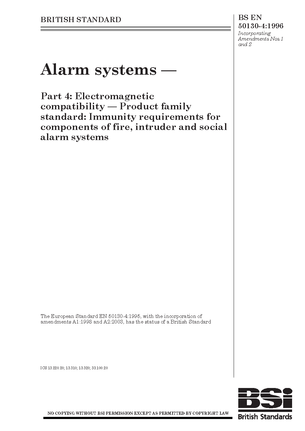 Alarm systems Electromagnetic compatibility. Product family standard: Immunity requirements for components of fire, intruder, hold up, CCTV, access control and social alarm