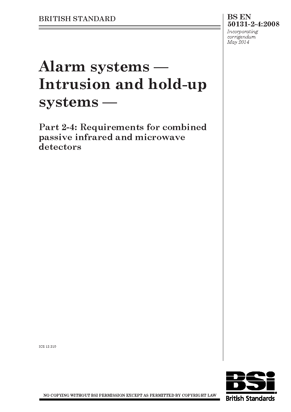 Alarm systems. Intrusion and hold-up systems Requirements for combined passive infrared microwave detectors