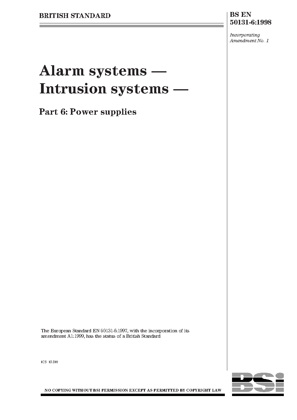 Alarm systems. Intrusion and hold-up systems Power supplies