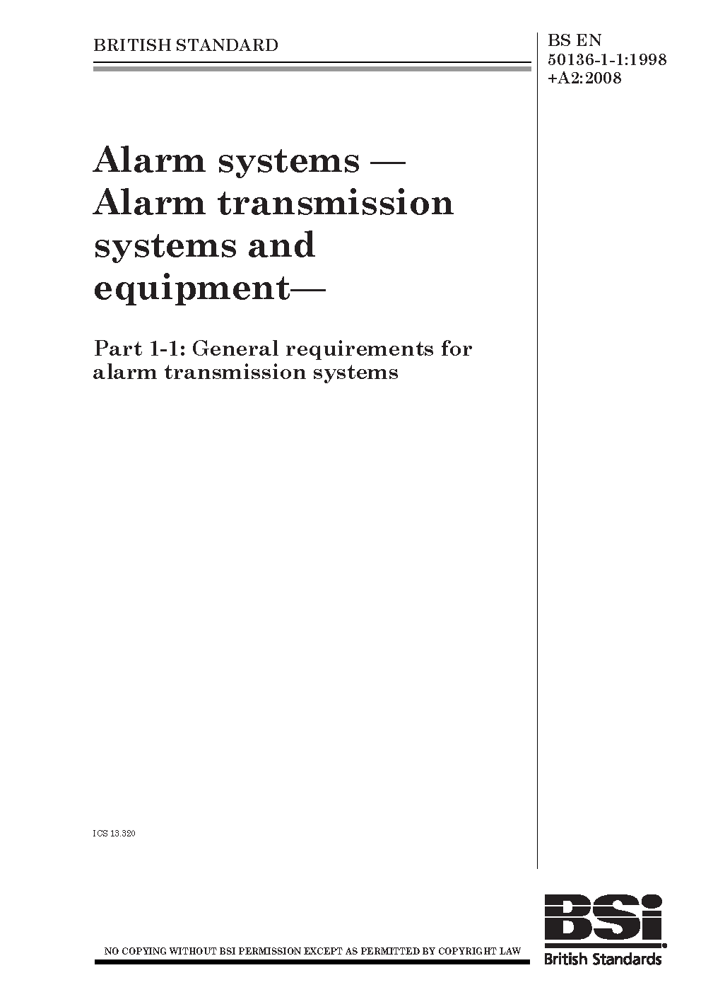 BS EN 50136-1-1:1998+A2:2008