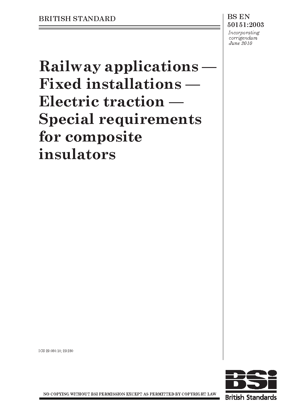 Railway applications. Fixed installations. Electric traction. Special requirements for composite insulators