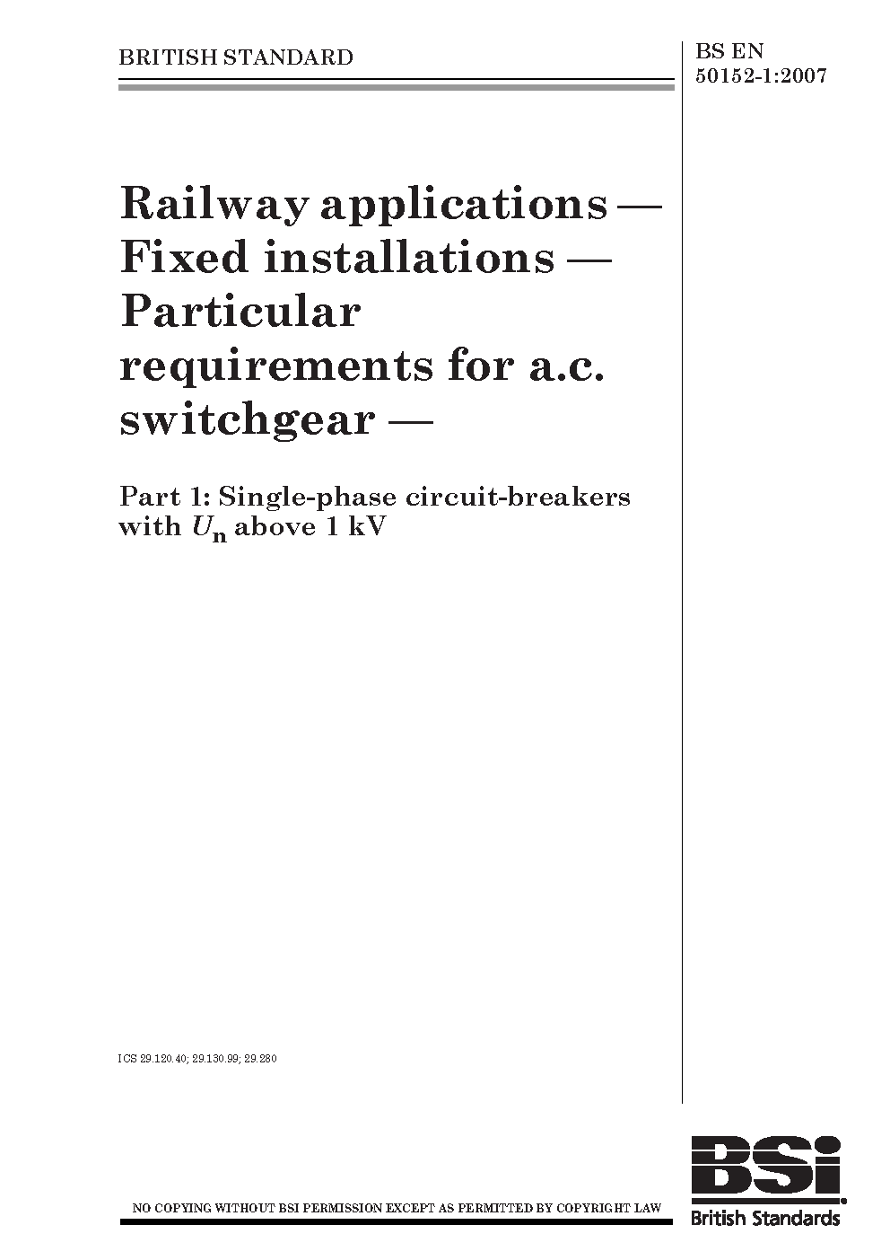 Railway applications. Fixed installations. Particular requirements for alternating current switchgear Circuit-breakers with nominal voltage above 1 kV