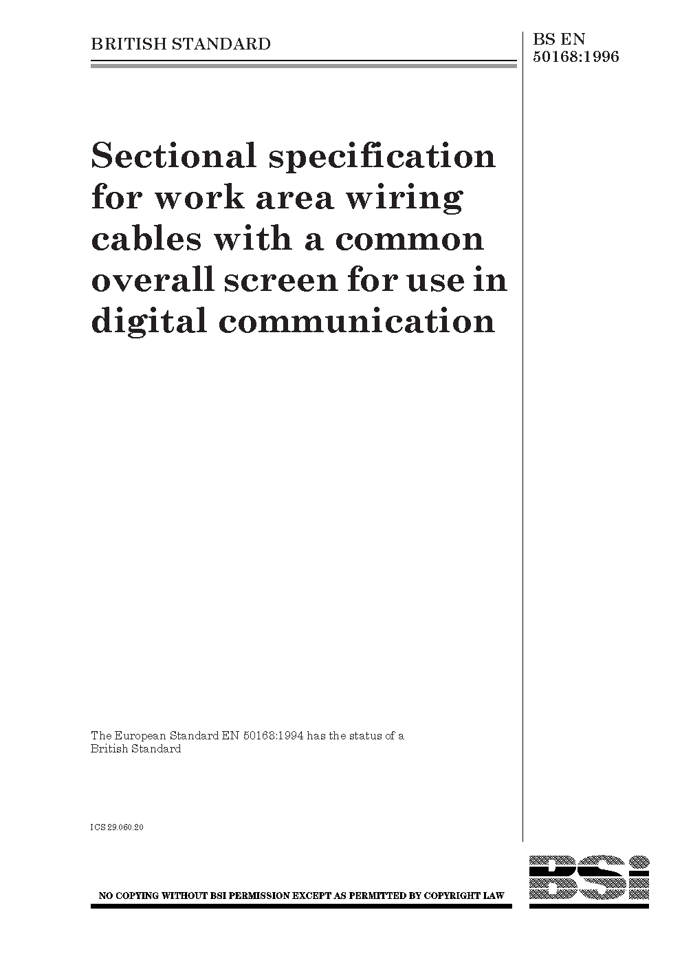 Sectional specification for work area wiring cables with a common overall screen for use in digital communication