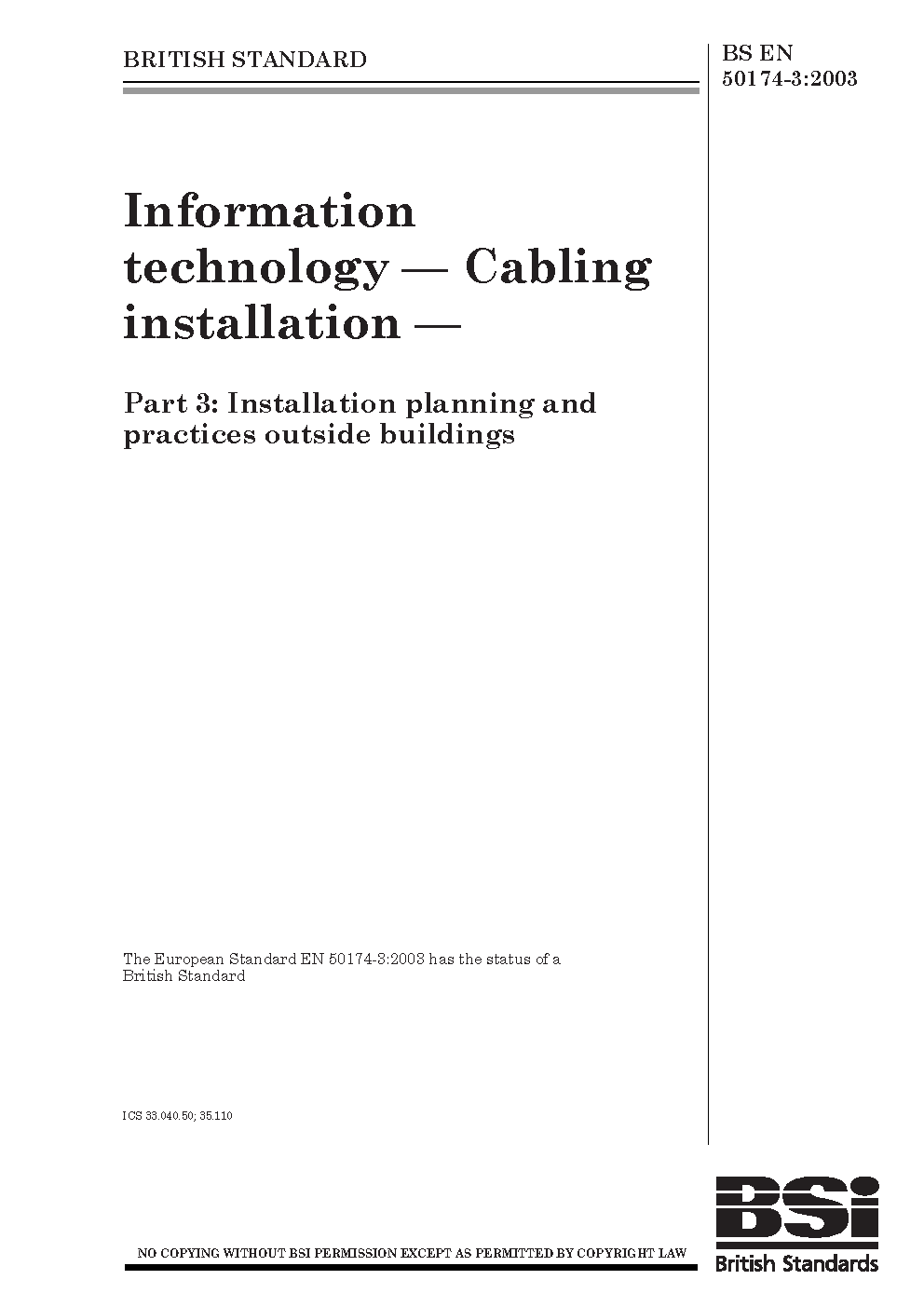 BS EN 50174-3:2013+A1:2017