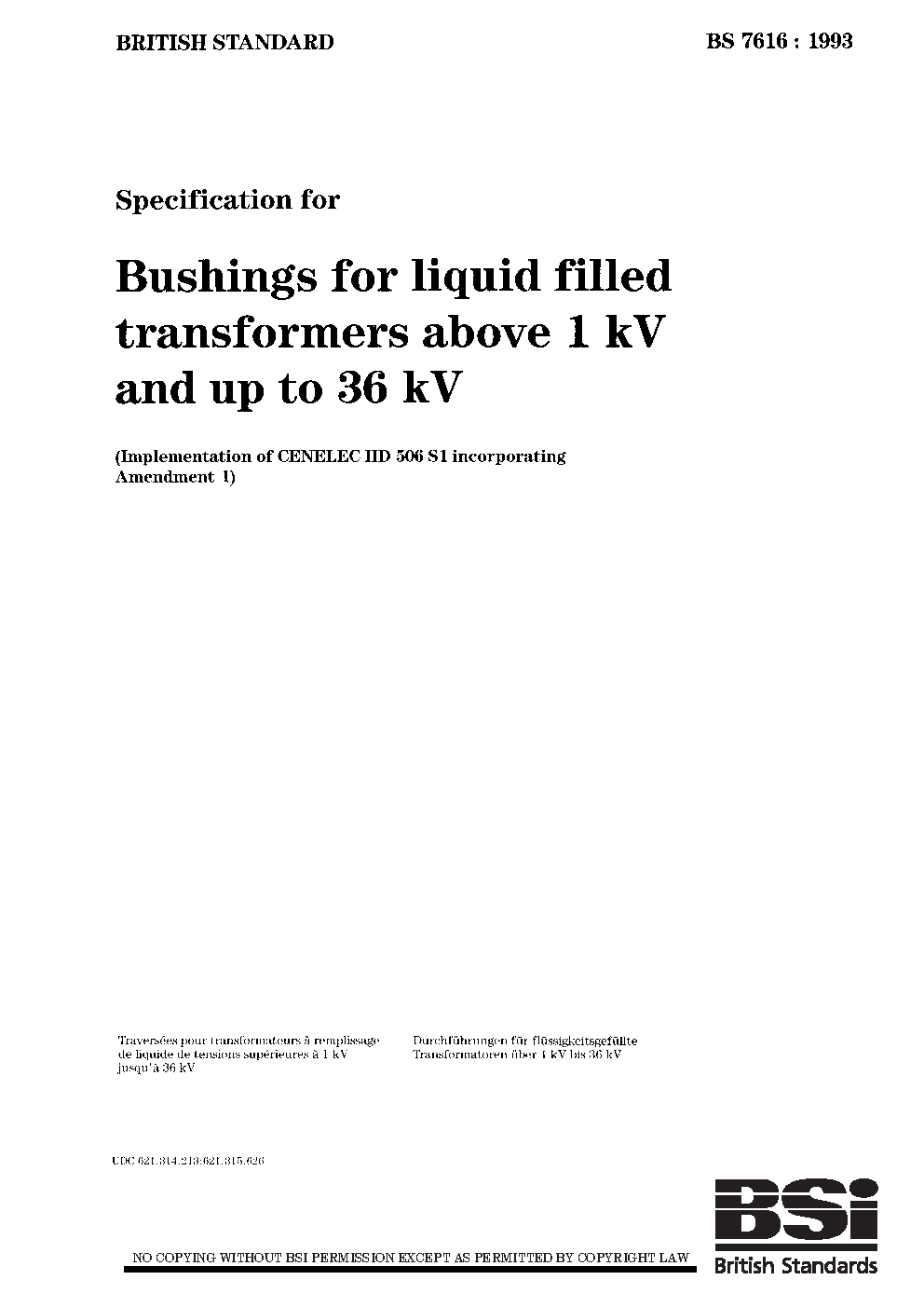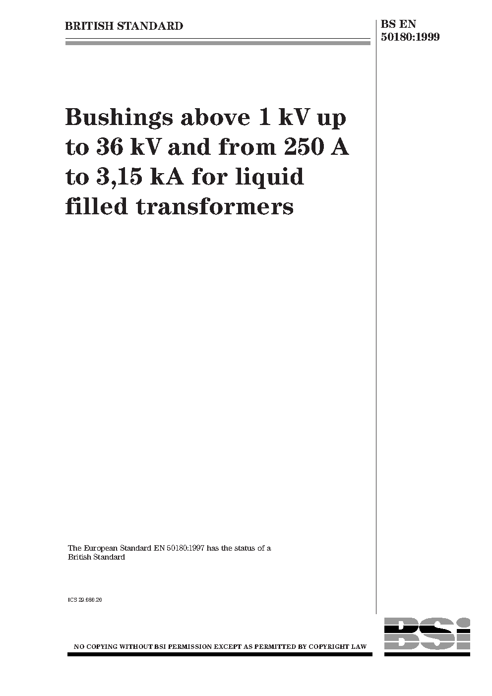 Bushings above 1 kV up to 36 kV and from 250 A to 3,15 kA for liquid filled transformers