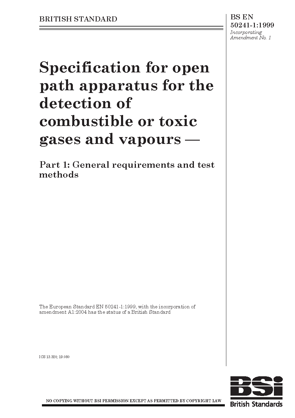 Specification for open path apparatus the detection of combustible or toxic gases and vapours General requirements test methods